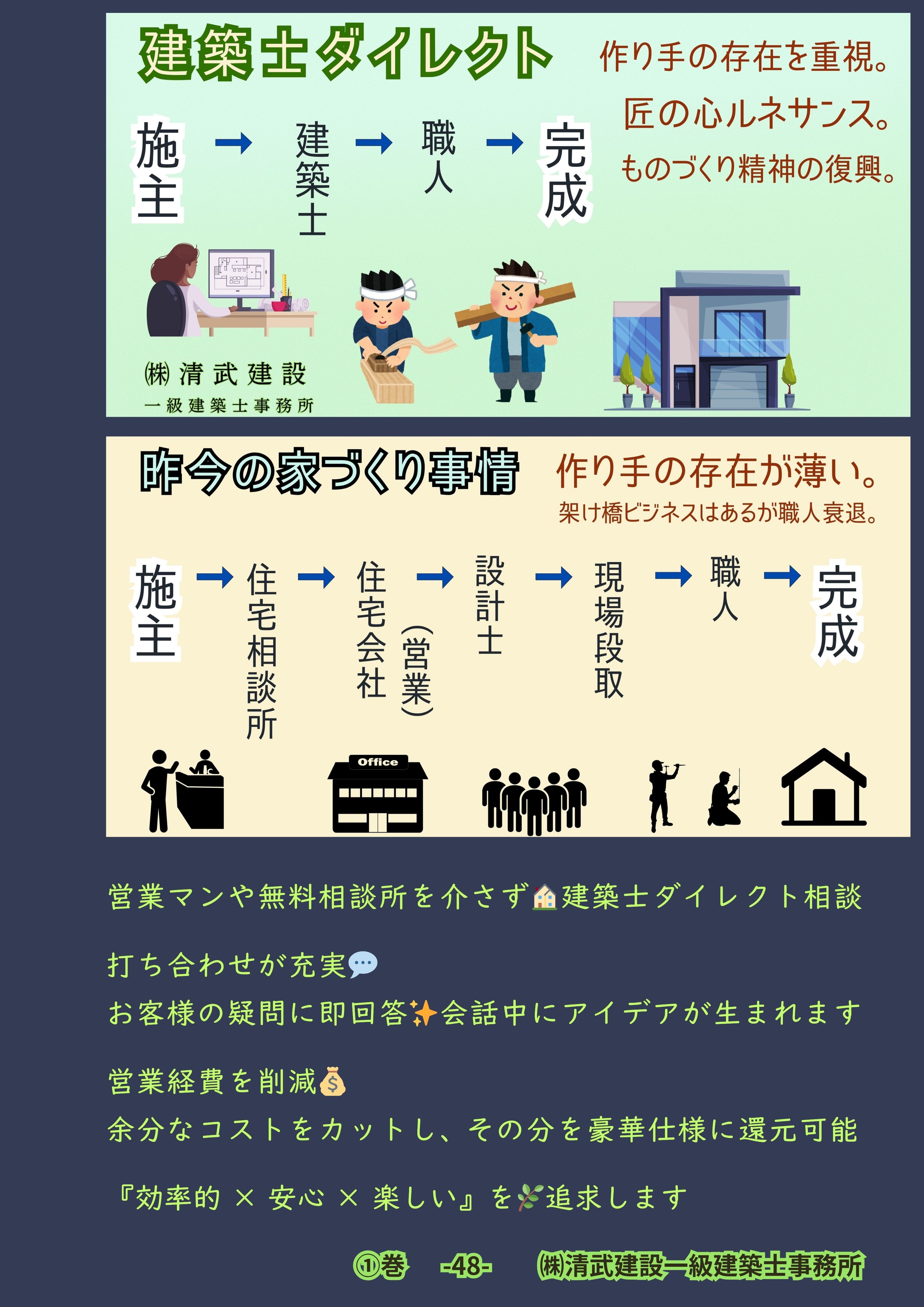 弊社では営業を挟まずに、「建築士が直接お客様と対話」をさせていただきます。