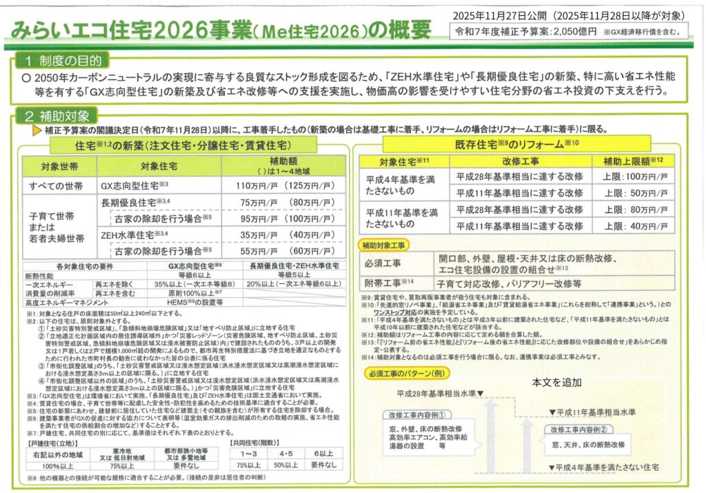 (子育てグリーン住宅支援事業の後続事業)