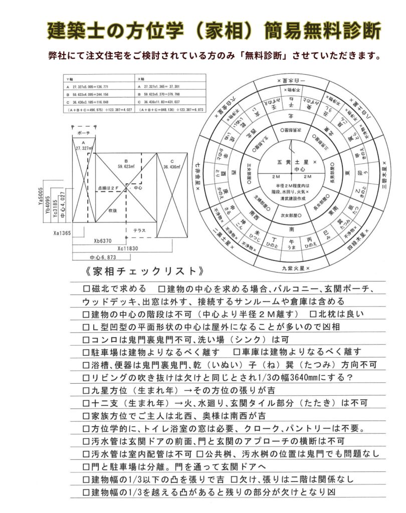 予算内で、方位学、家相学的に検討した、