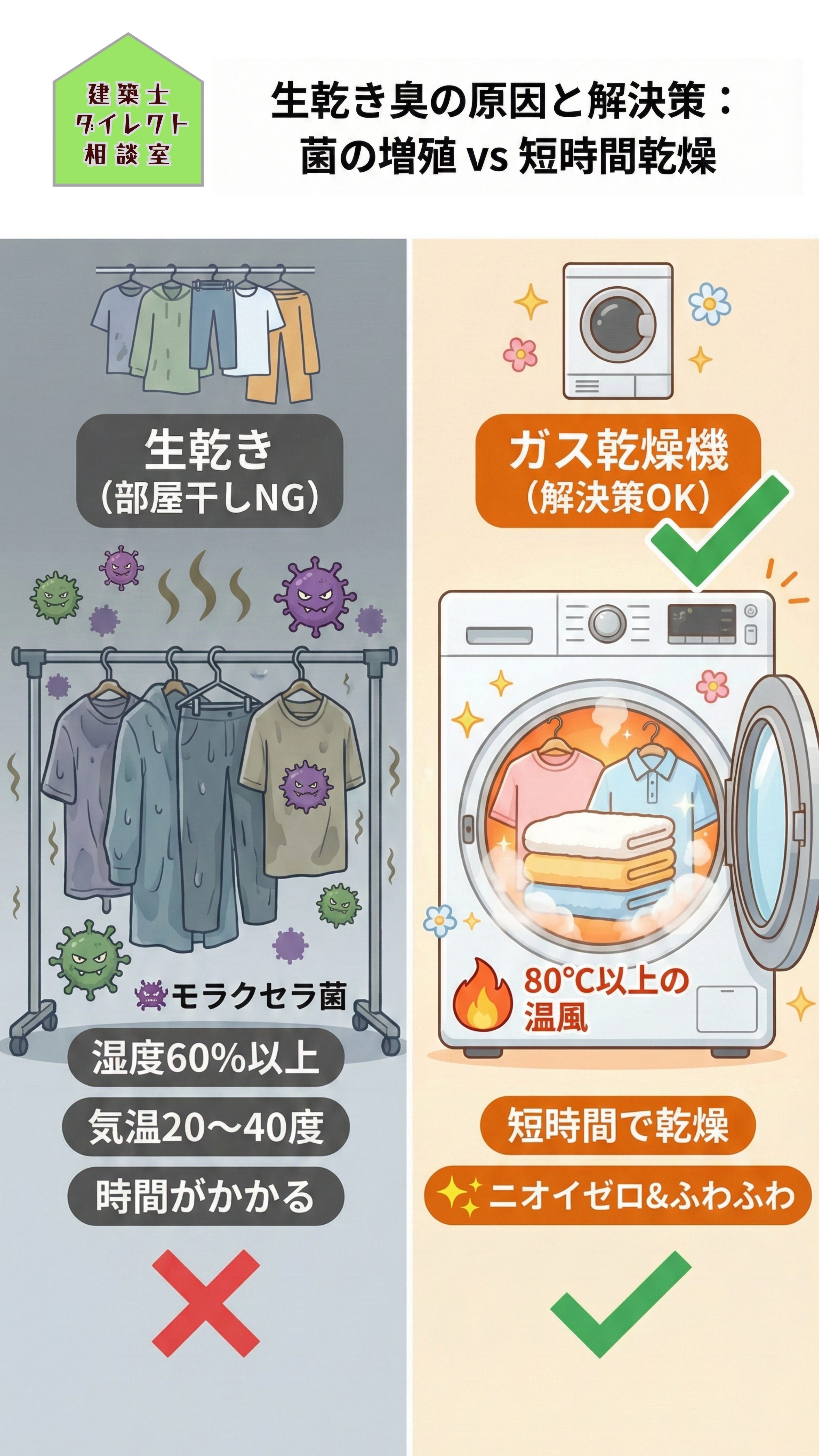 「洗濯物のニオイ」から解放されたいなら、「乾燥時間を短くする」のが一番の近道です🏃💨