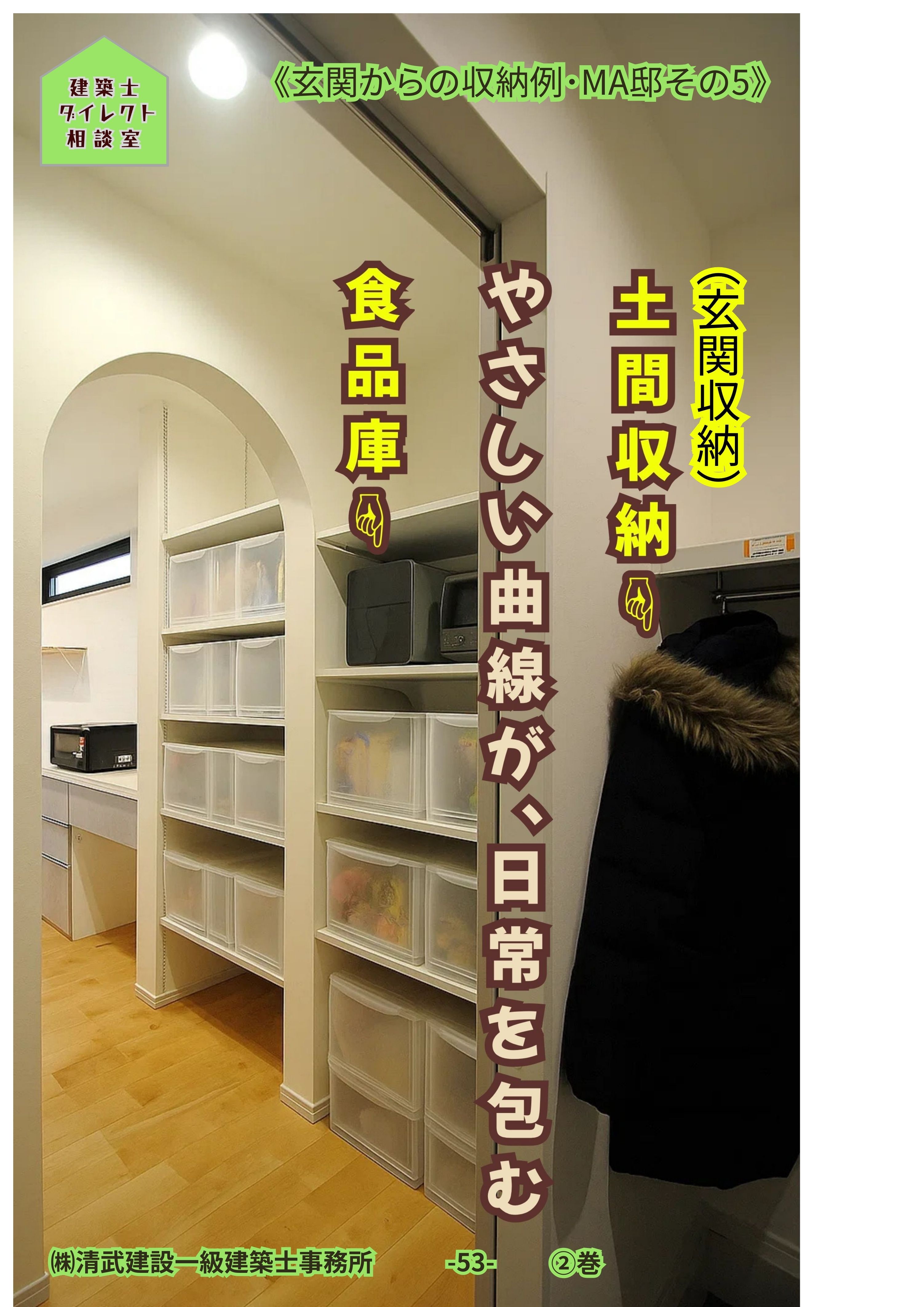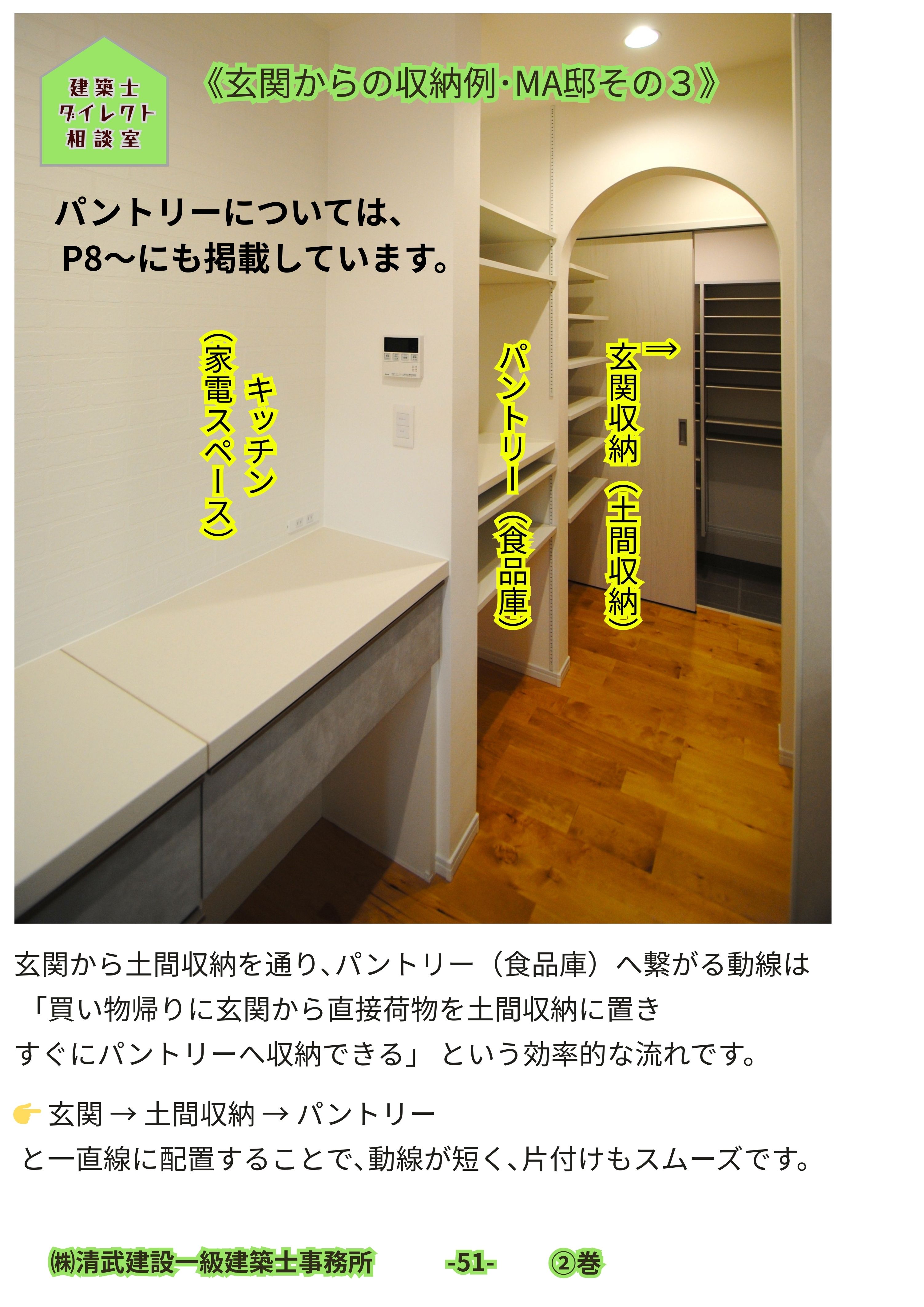 「通り抜けできる食品庫」+「家事動線のショートカット」