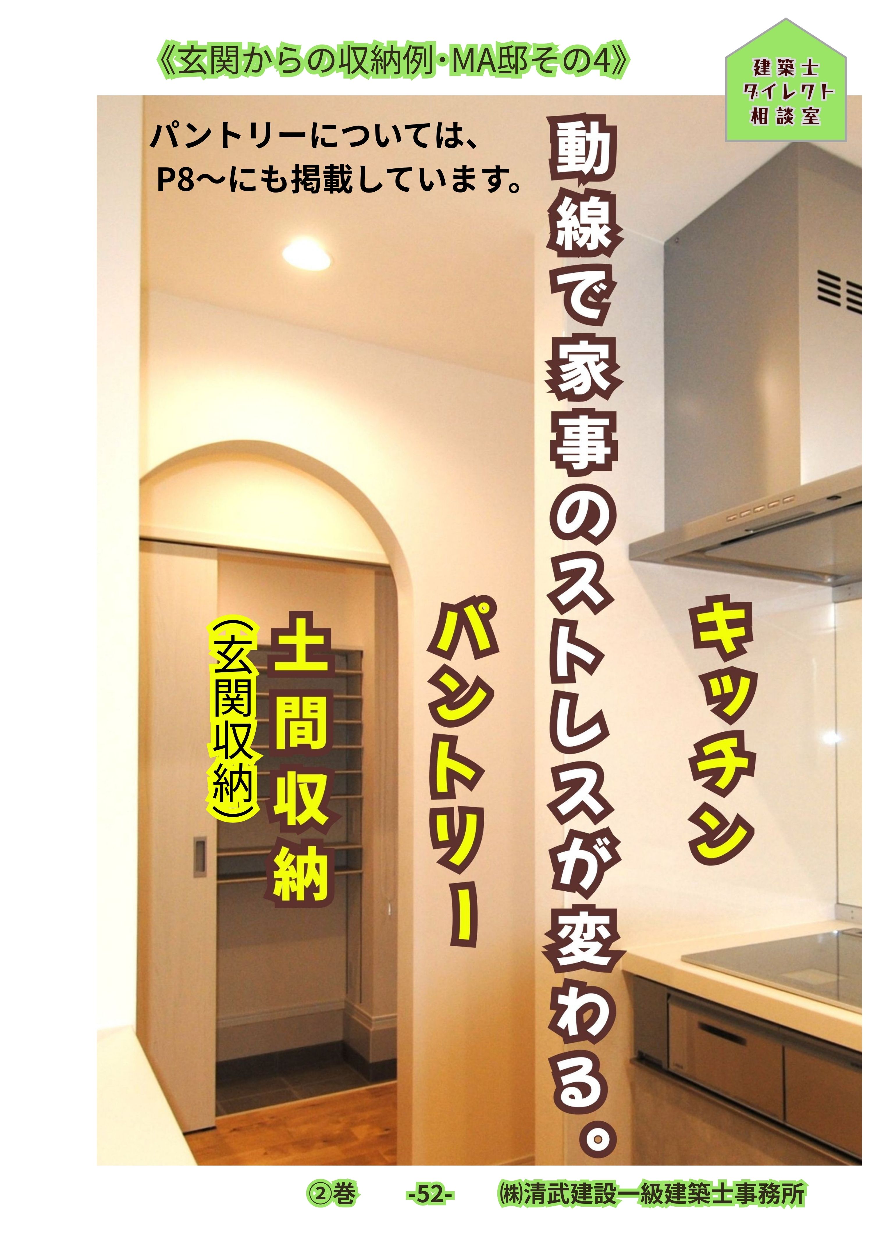 玄関 → パントリー(土間収納兼用) → キッチン →