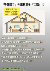 屋根裏は「使わない空間」ではありません これまでの住宅では、屋根裏は、収納、あるいは暑さ・寒さを和らげるための空間として使われることが一般的でした。 断熱性能の向上で、考え方が変わりました 近年、住宅の断熱性能は大きく向 […]